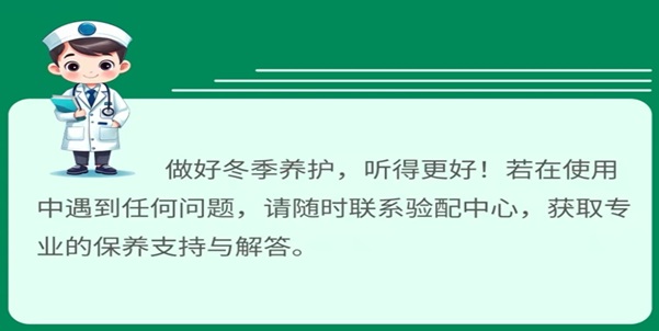 做好冬季养护,听得更好!若在使用中遇到任何问题,请随时联系我们的验配中心,获取专业的保养支持与解答。